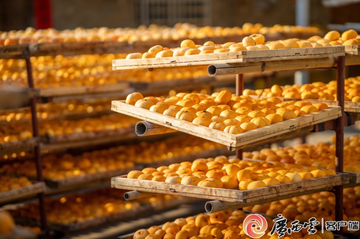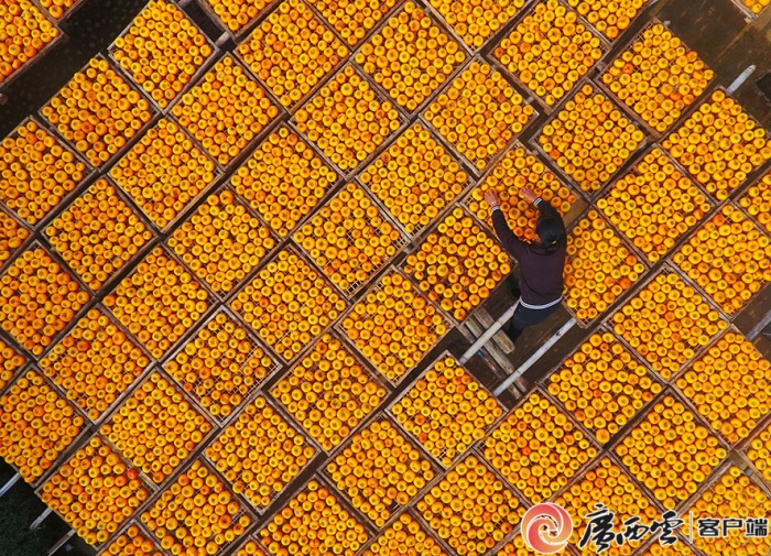 桂林市平乐县沙子镇渡河村农民在晾晒柿子。黄孝邦 摄(资料图)